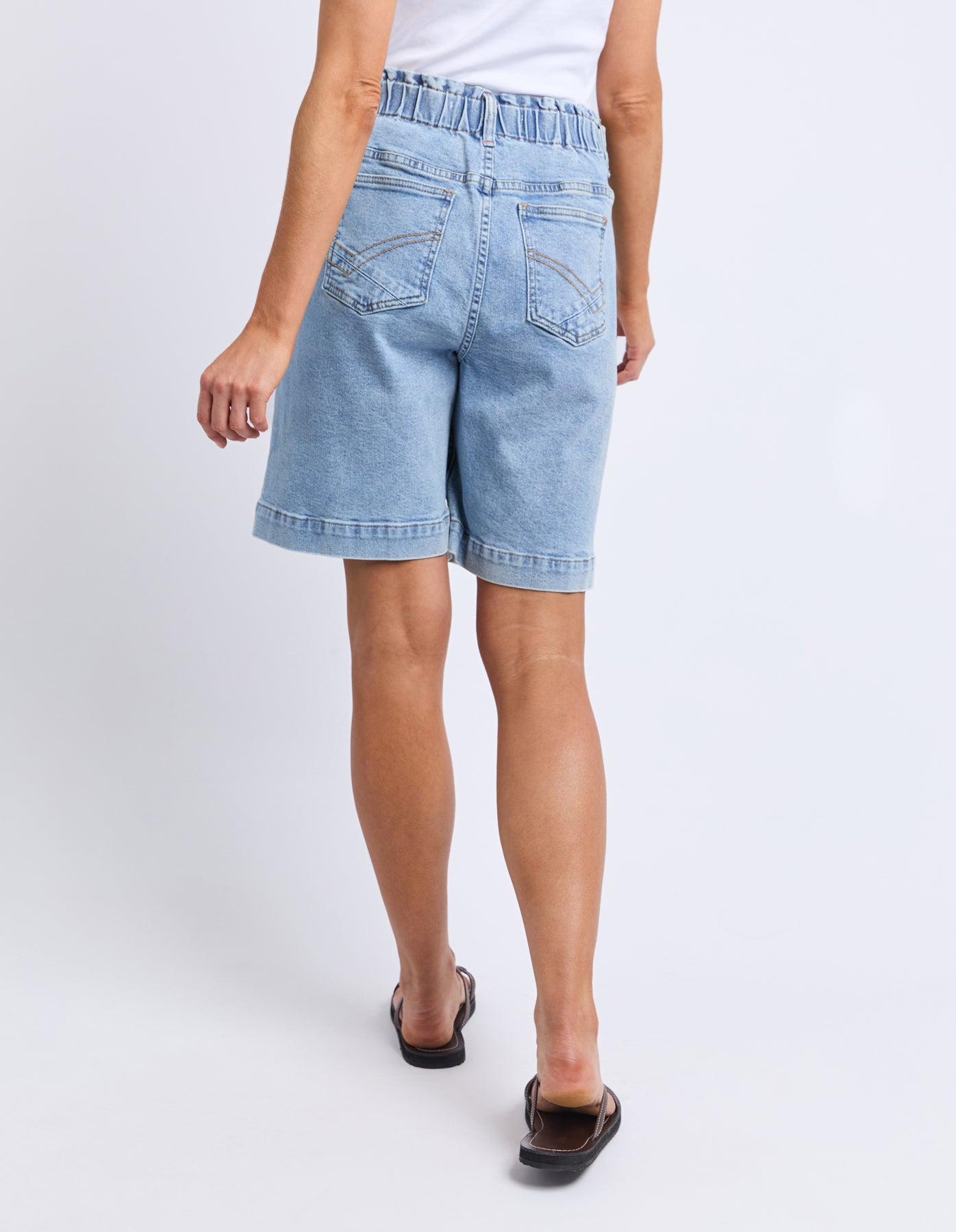 The Atlas Long Denim Short features our best-selling short shape with a long, flattering knee-length cut. Designed with elasticated side seams and back waist, these shorts offer enhanced comfort and a tailored fit, making them a versatile and stylish addition to your wardrobe.
