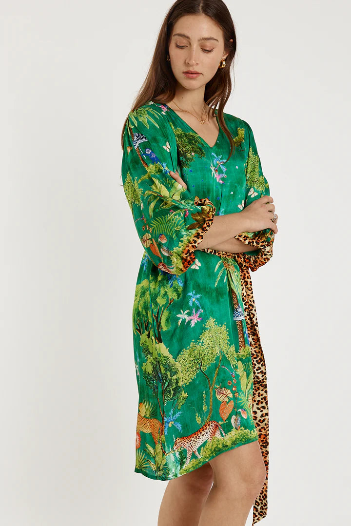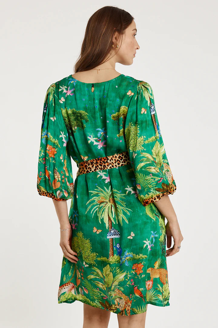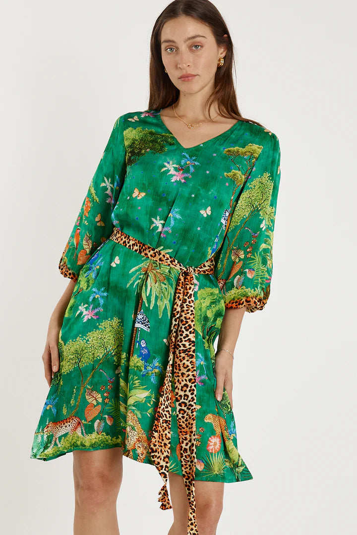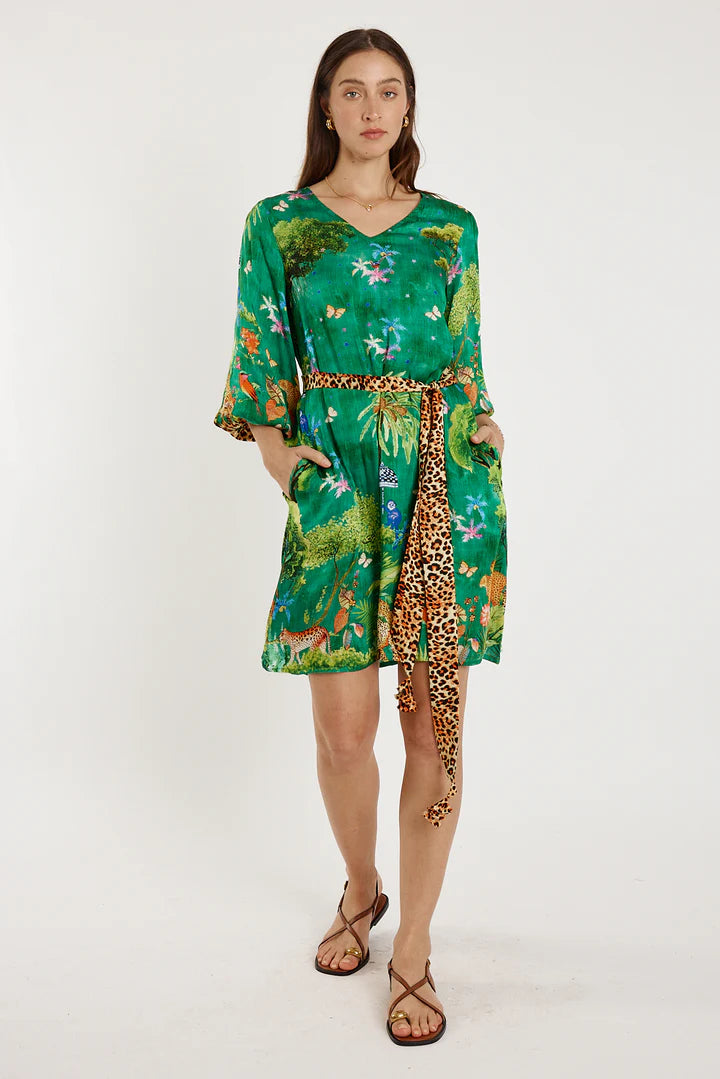 Elevate your wardrobe with the Rubyyaya Mataram Dress in stunning navy. Crafted from luxurious 100% viscose satin, this knee-length A-line dress features a flattering V-neckline and a generous silhouette for comfort and elegance. The puff sleeves with elasticated openings add a refined touch, while the separate self-tie belt allows for a custom fit. Practical side seam pockets complete this sophisticated piece, perfect for daytime events or evening occasions.