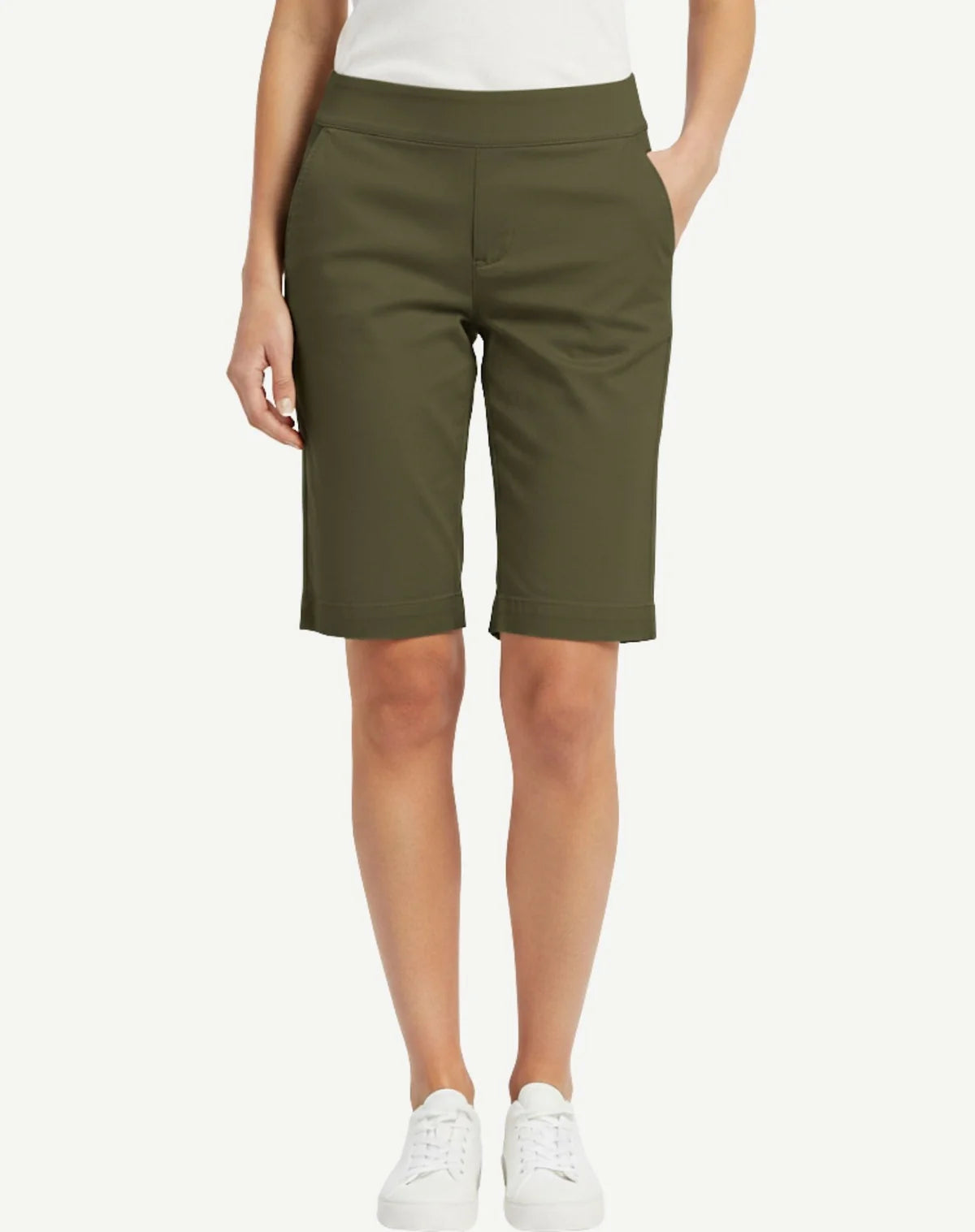 The Rosemary Weekend Soft Chino Shorts brings effortless comfort with a timeless, everyday style. Designed in a lightweight stretch fabric with a soft pull-on waistband, these women’s chino shorts offer ease of movement and all-day wearability. The straight-leg cut and flattering length make them versatile for weekends, travel, or casual days out. In a classic rosemary green shade, they’re the perfect blend of relaxed and refined.