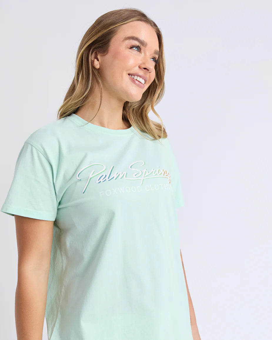 The Palm Springs Tee captures the relaxed mood of summer days. Crafted from soft 100% cotton, it features an exclusive Foxwood front chest print with a fresh pastel design. The round neckline and relaxed fit make it a comfortable go-to for casual styling.