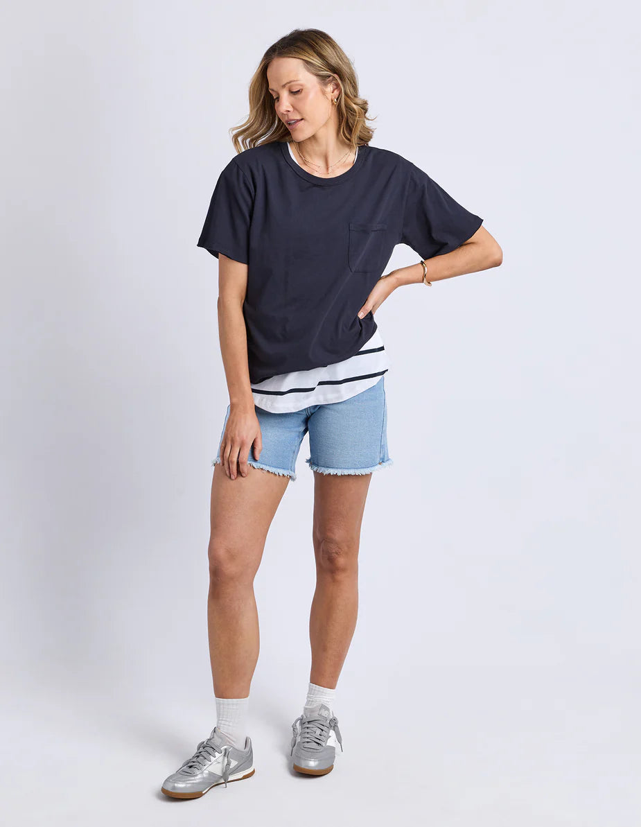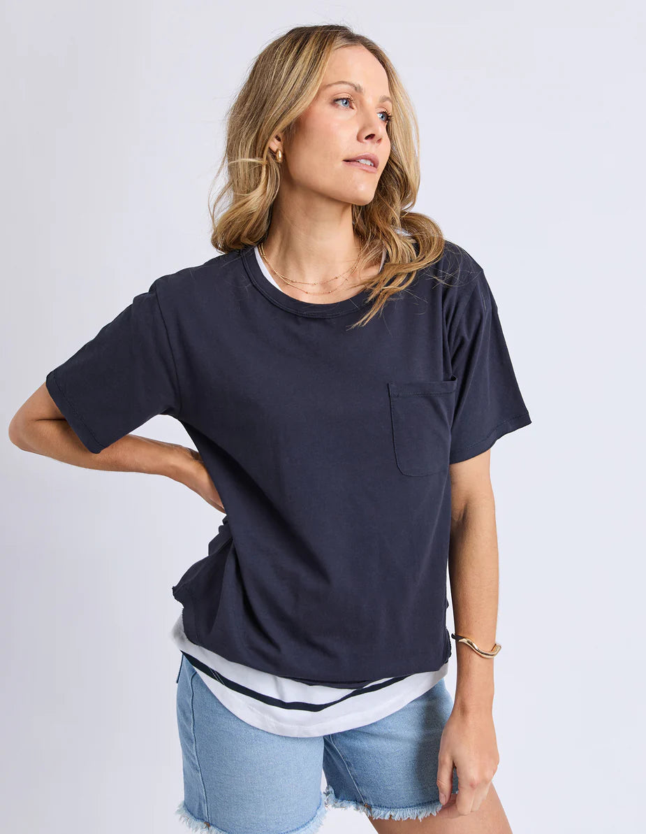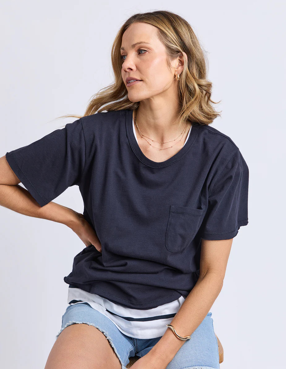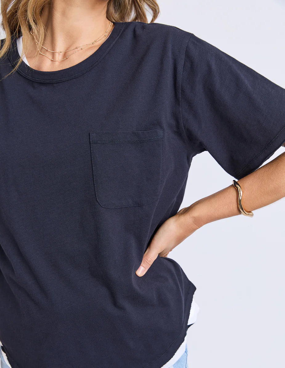 The San Diego Tee is your easy weekend go-to. With its chest pocket, raw edge hem, and soft cotton fabric, it has that perfectly worn-in vibe you’ll reach for again and again. Pair it with denim or linen for laid-back summer style.