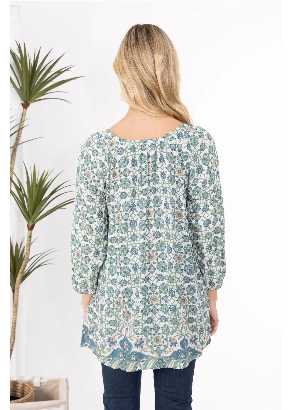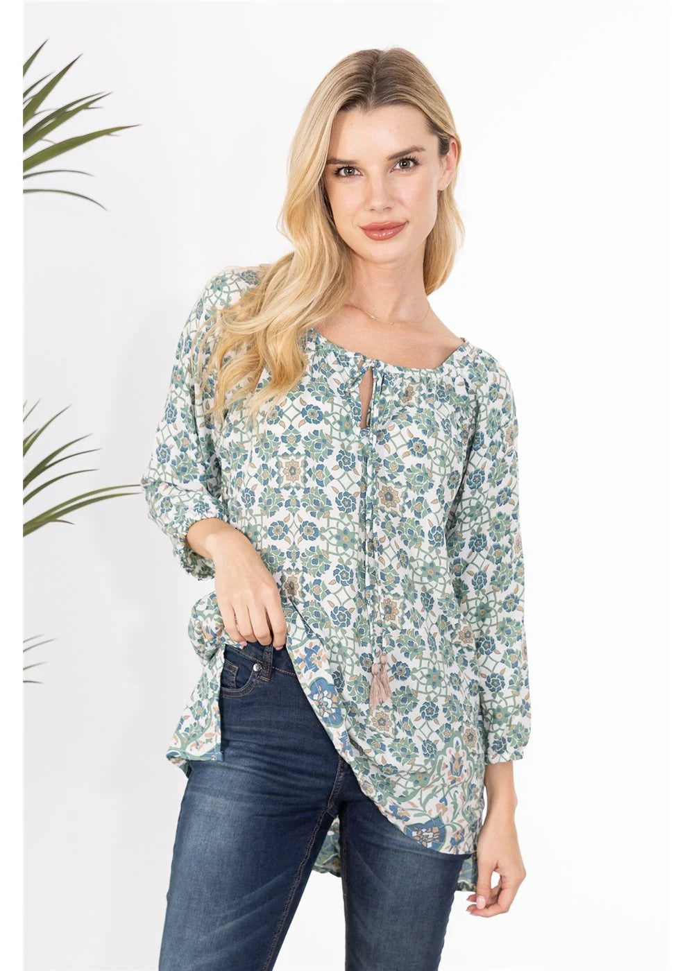 Effortlessly stylish and beautifully lightweight, this rayon voile top is perfect for relaxed days and casual outings. Crafted from soft, breathable rayon voile. The neckline is accented with a keyhole tie detail finished with playful tassels, while the long sleeves and curved hem add a flattering easy-to-wear shape.