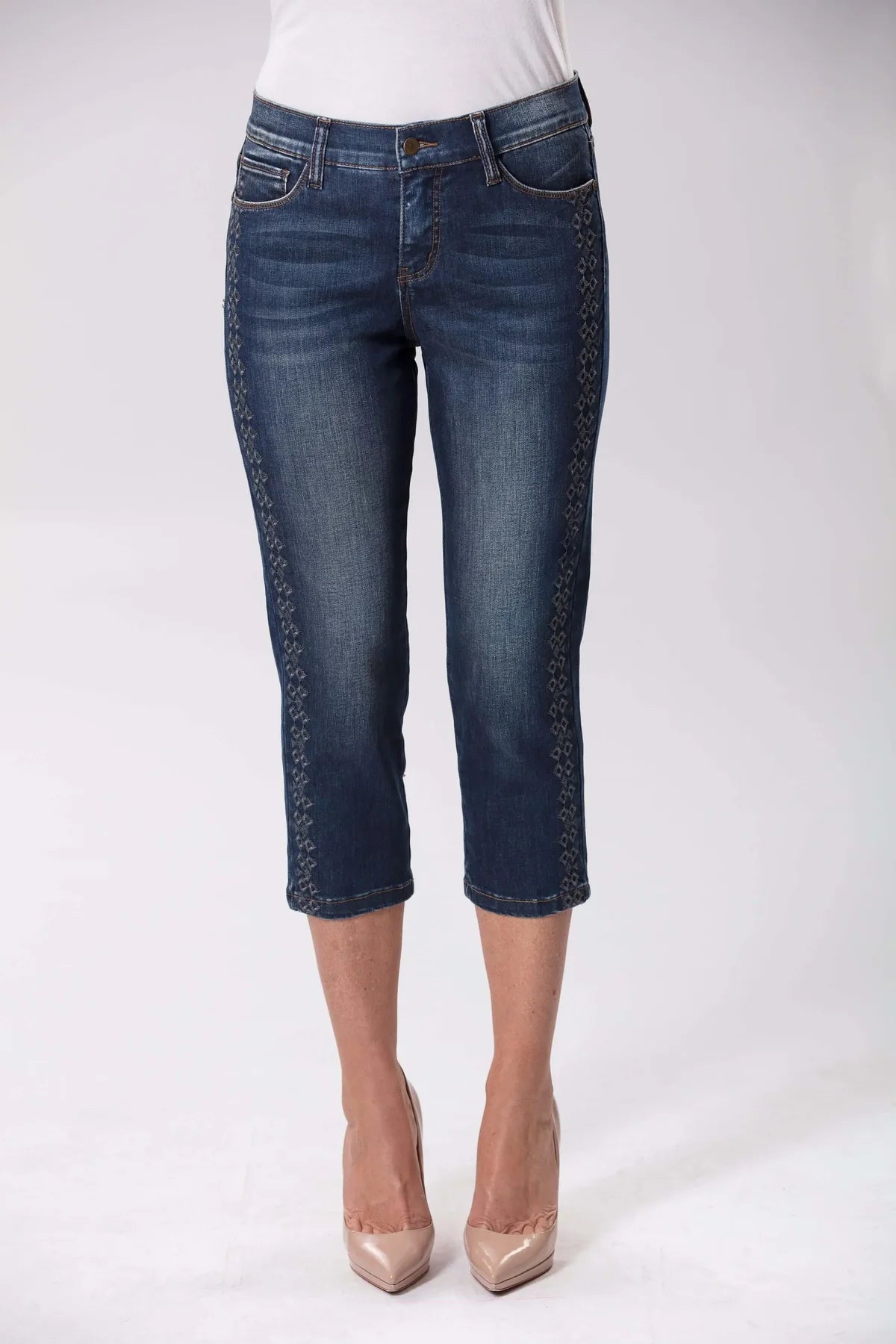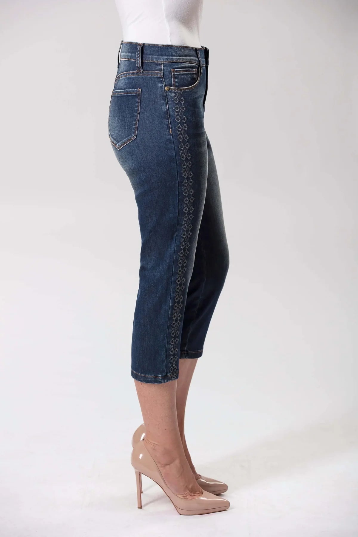 Introducing Corfu's Vintage Alina Crop Jeans for Women - the perfect addition to your wardrobe for a trendy and comfortable look. These jeans feature a capri pant style, with a cropped design that hits just above the ankle, giving you a chic and modern look. The contoured waistband is designed to hug your curves and provide a slimming effect, ensuring that you always look your best.