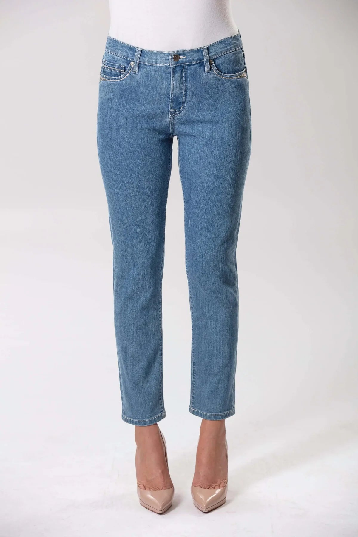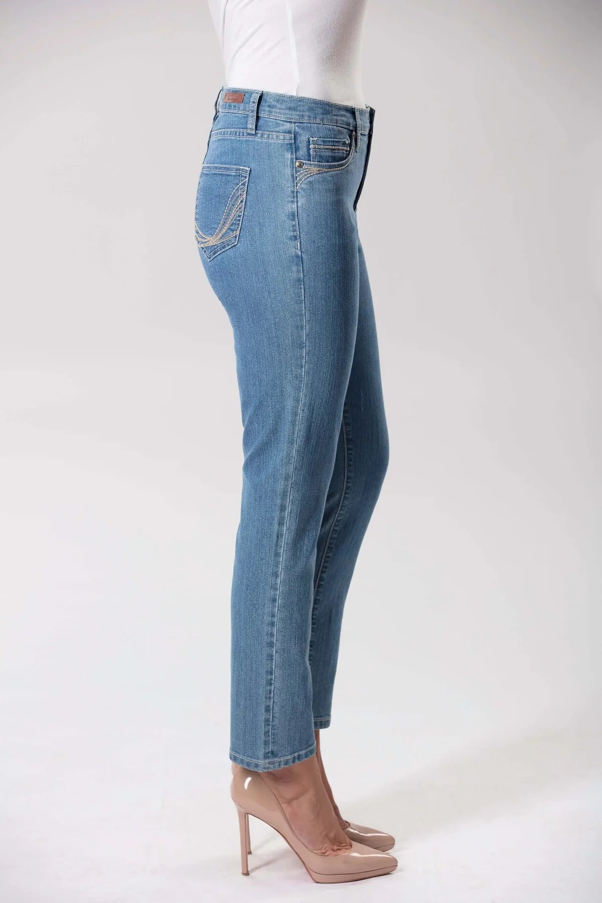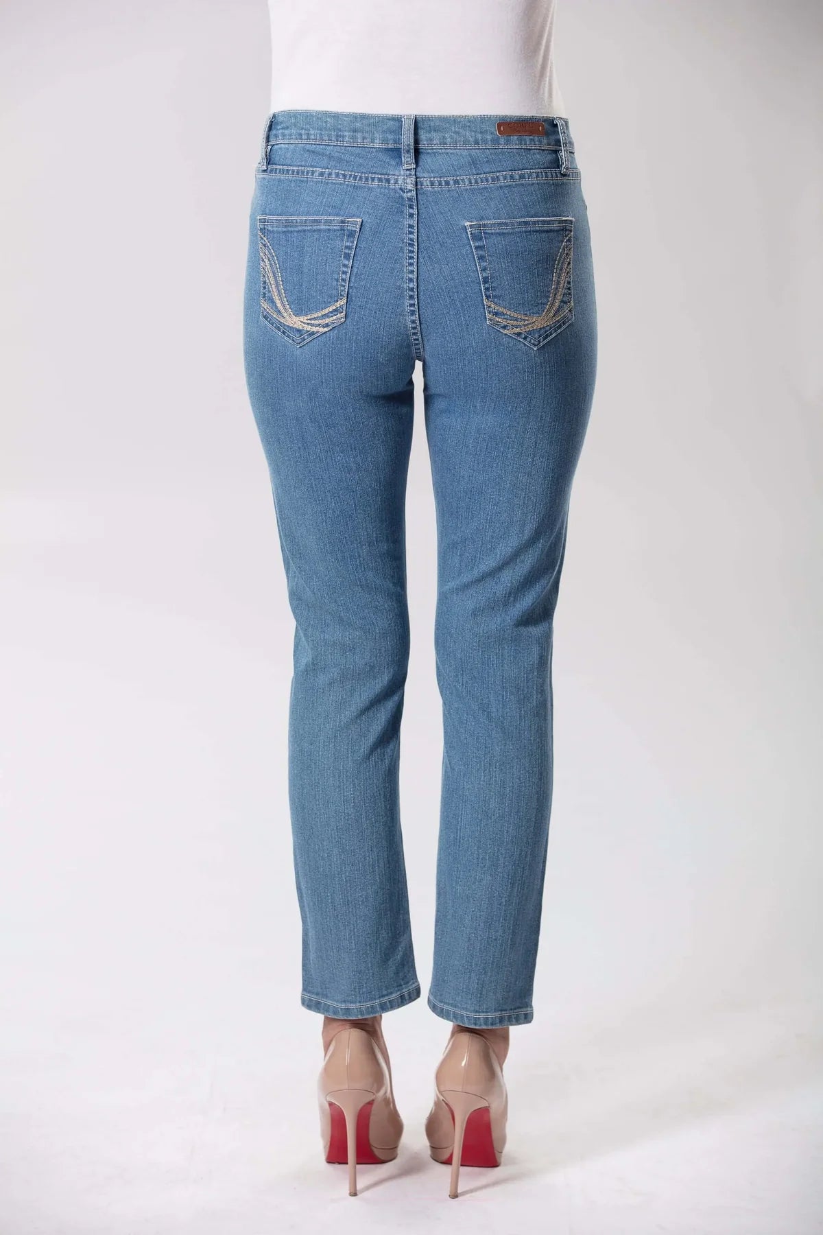 One of CORFU's best selling styles, these ankle length Audrey Stretch Denim jeans are the perfect addition to your wardrobe. Extremely comfortable, with a cut that flatters and slims your figure, you will never be out of this pair of jeans. Whatever you're doing, the contoured waistband and premium stretch denim means you'll be doing it in complete comfort.