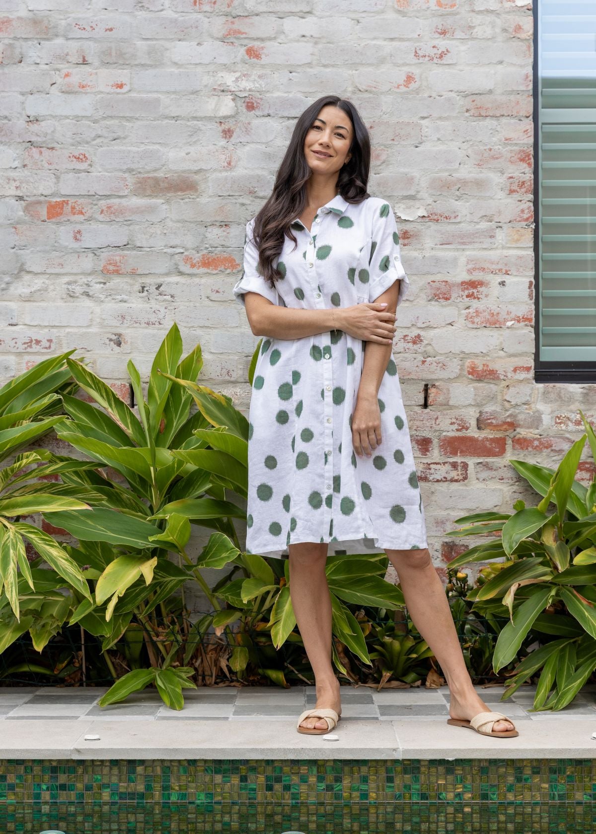 The Jump Scratch Spot Dress is a collared button-through dress made from 100% linen. It features the unique Jump abstract spot print, princess seams on the front, tab short sleeves, shell buttons, and two side pockets. The relaxed styling and super soft fabric make this a very stylish, comfortable addition to your wardrobe.