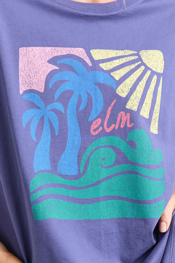 Featuring an exclusive Elm Design graphic in vibrant tropical colours on a vintage blue background, this relaxed-fit tee is crafted from 100% cotton and designed for comfort and style.